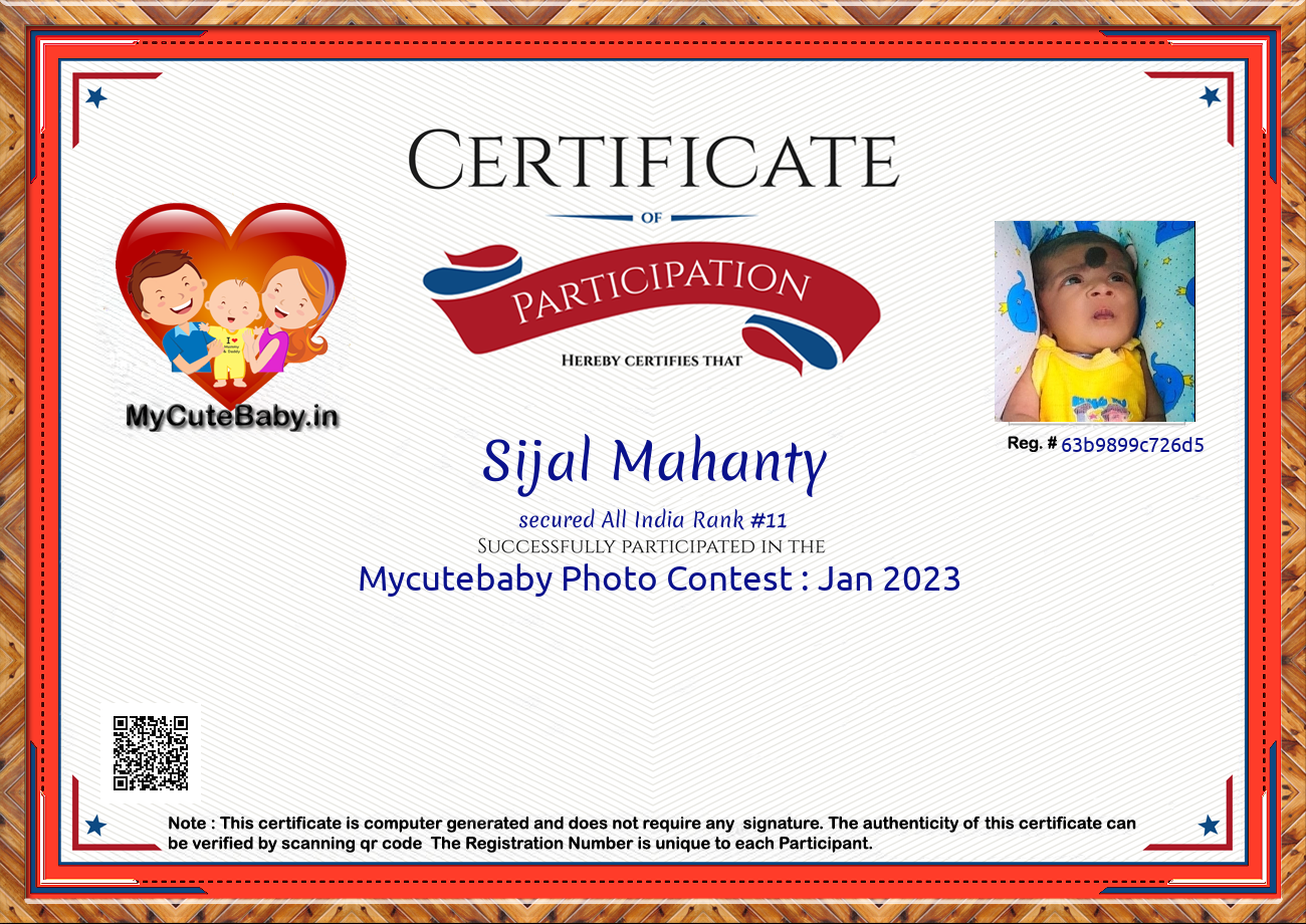Participation certificate for all the participants whose mycutebaby votes are more than 1000.