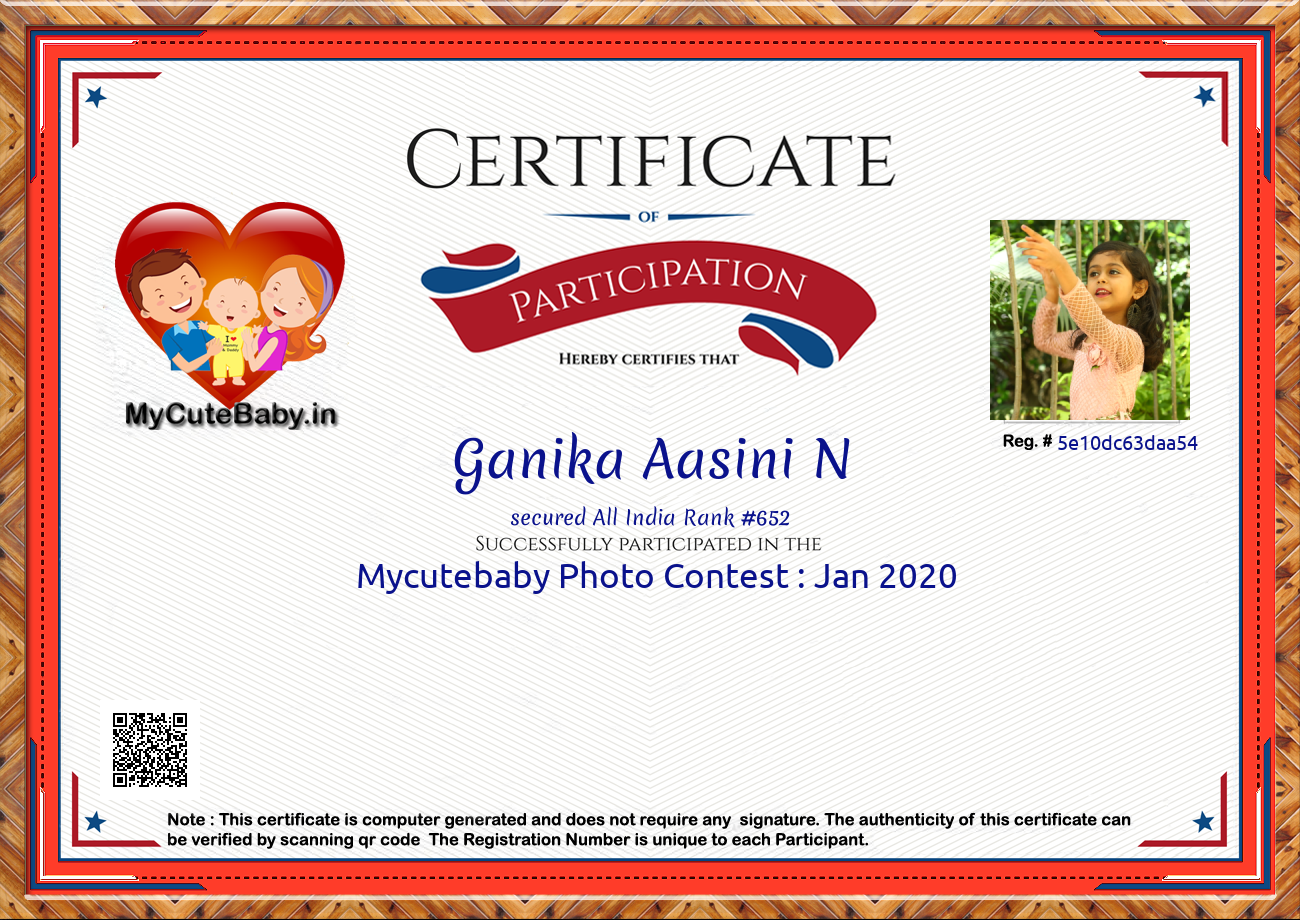 This Participations Certificate Is Verified With Registration Number #5e10dc63daa54