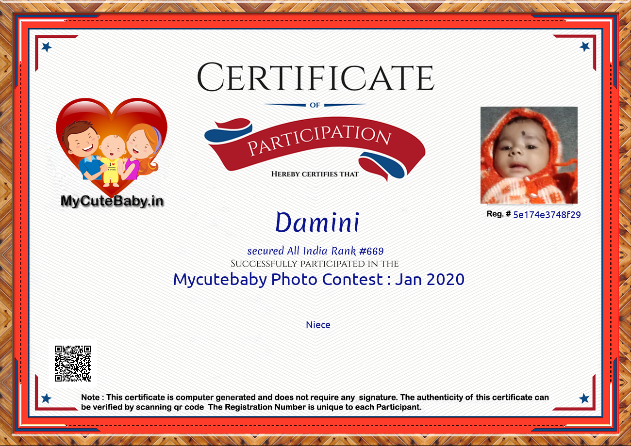 This Participations Certificate Is Verified With Registration Number #5e174e3748f29
