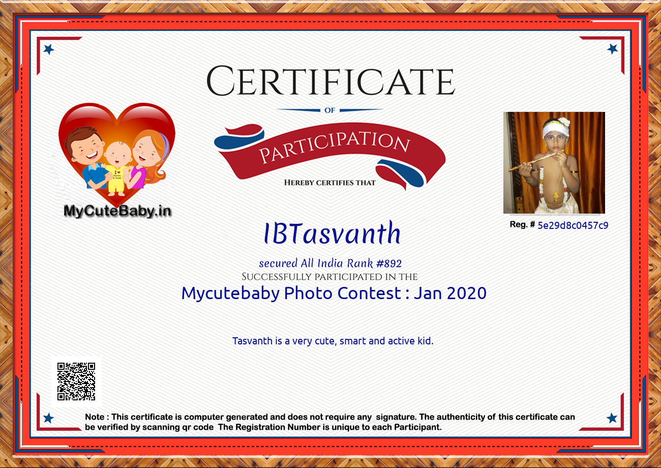 This Participations Certificate Is Verified With Registration Number #5e29d8c0457c9