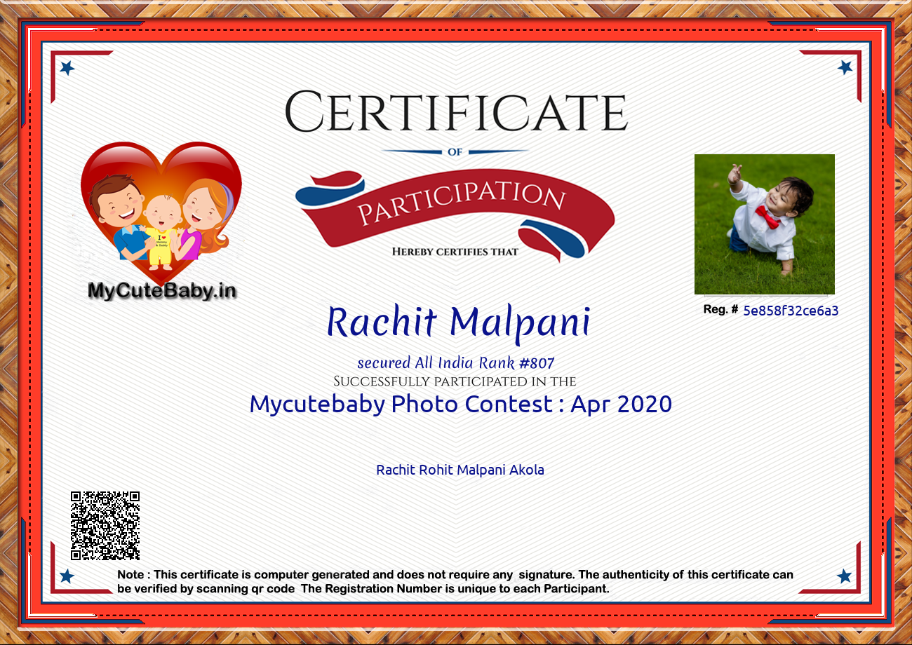 This Participations Certificate Is Verified With Registration Number #5e858f32ce6a3