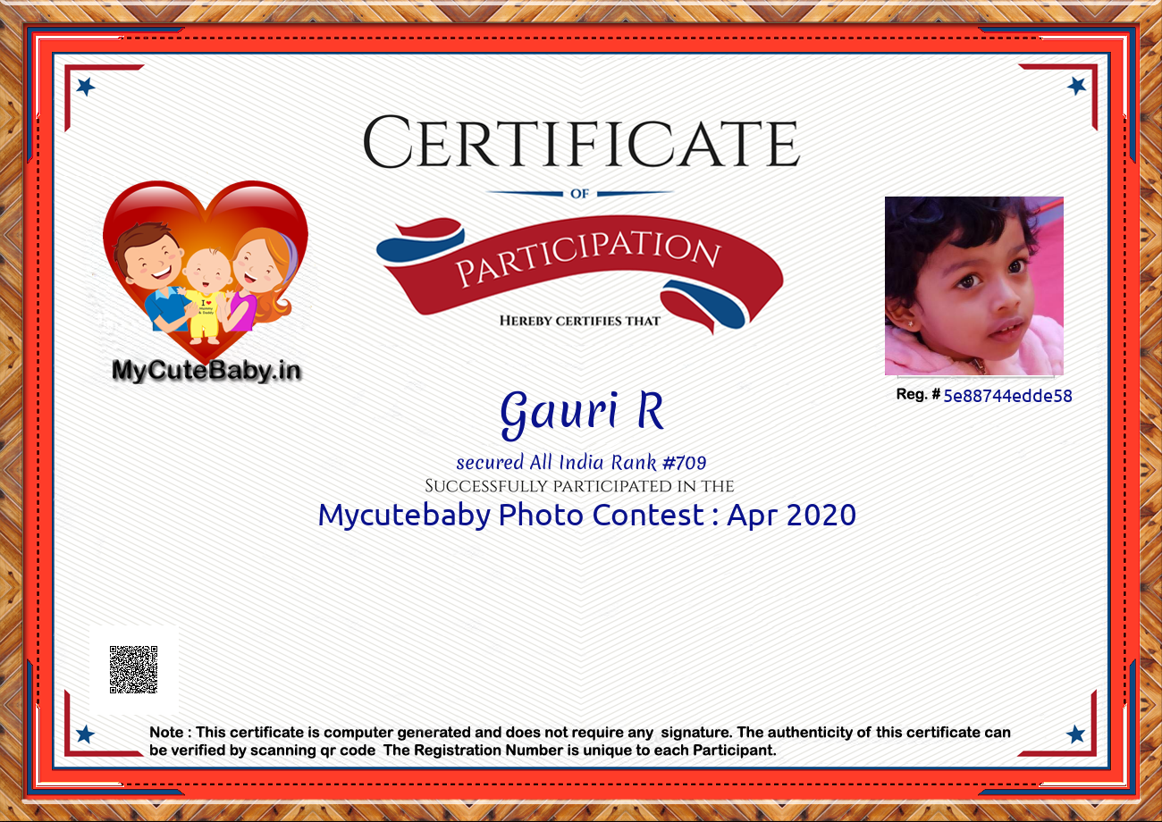 This Participations Certificate Is Verified With Registration Number #5e88744edde58