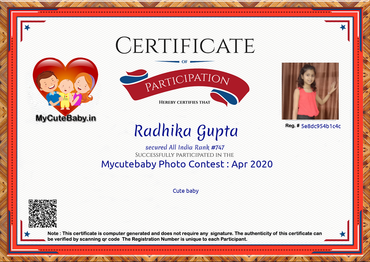 This Participations Certificate Is Verified With Registration Number #5e8dc954b1c4c