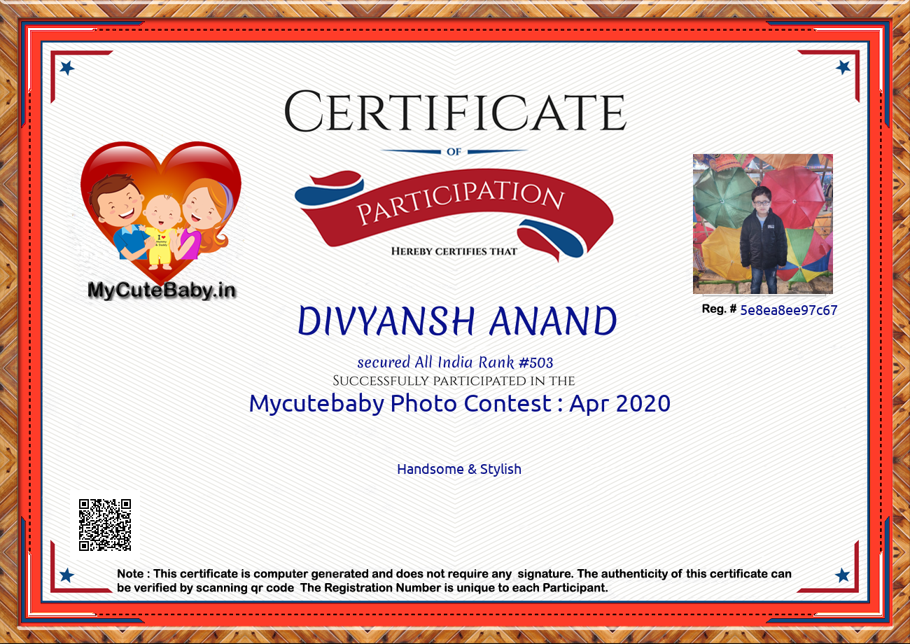 This Participations Certificate Is Verified With Registration Number #5e8ea8ee97c67