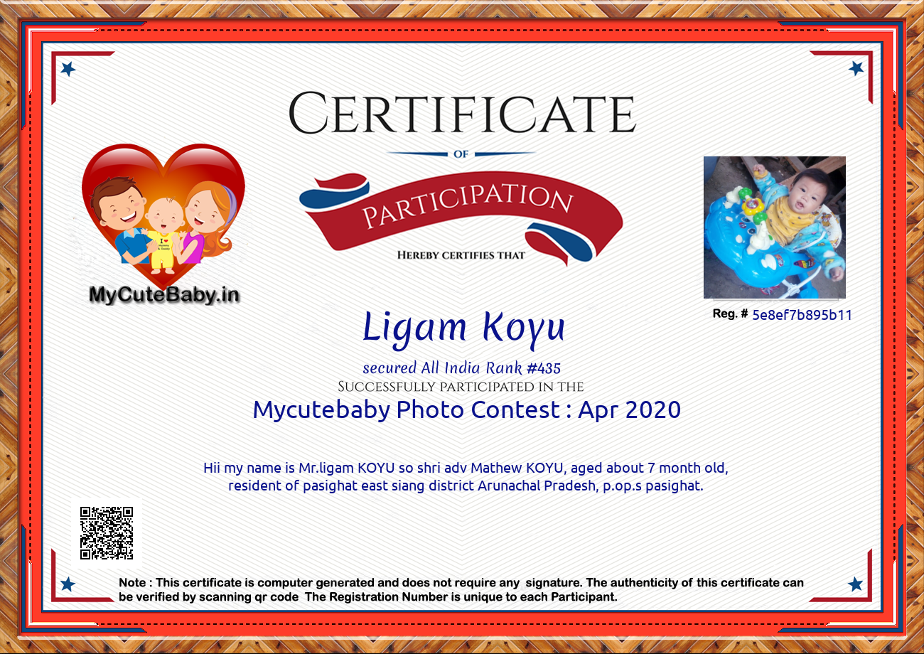 This Participations Certificate Is Verified With Registration Number #5e8ef7b895b11