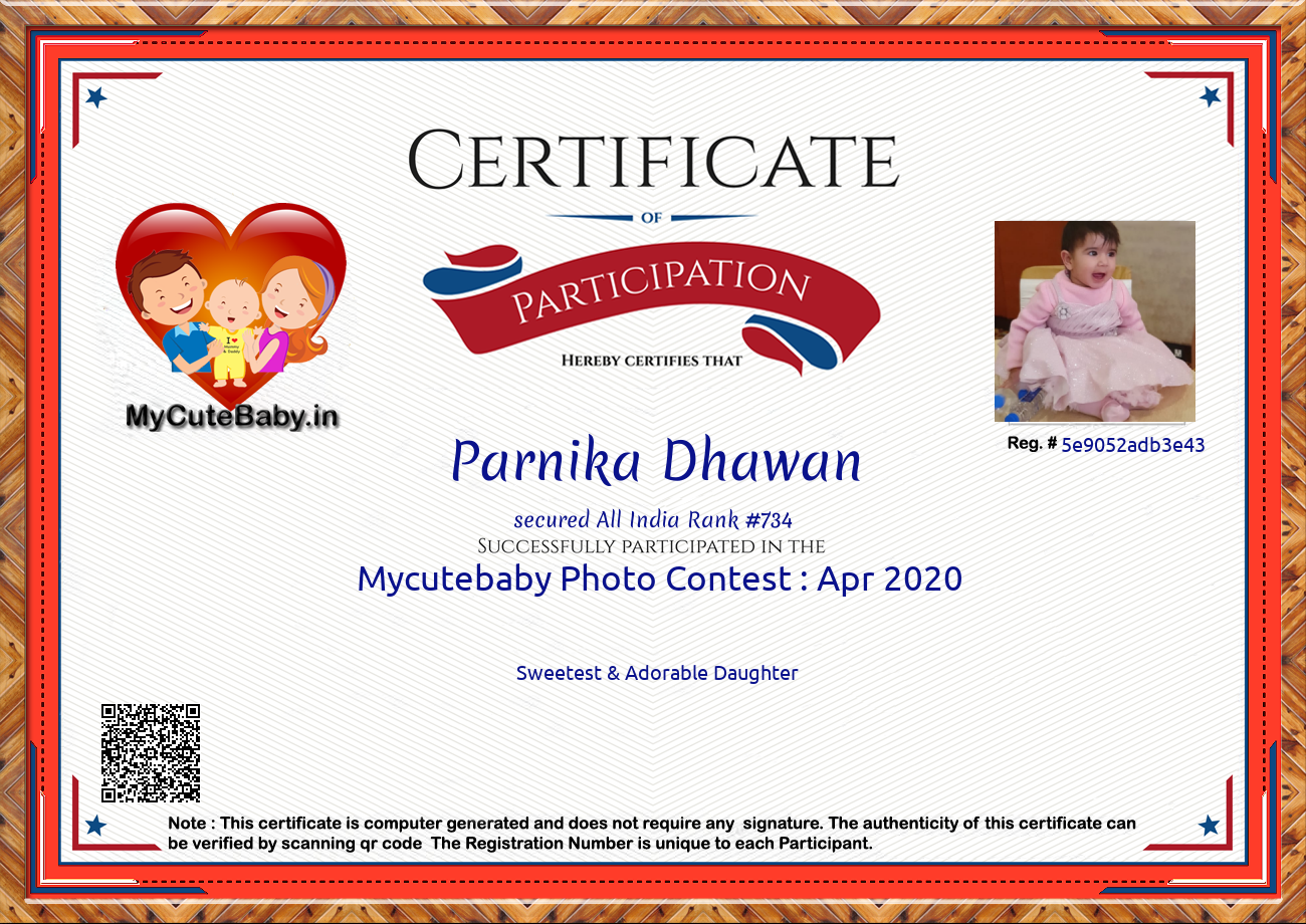 This Participations Certificate Is Verified With Registration Number #5e9052adb3e43