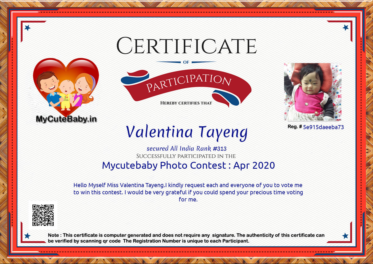 This Participations Certificate Is Verified With Registration Number #5e915daeeba73