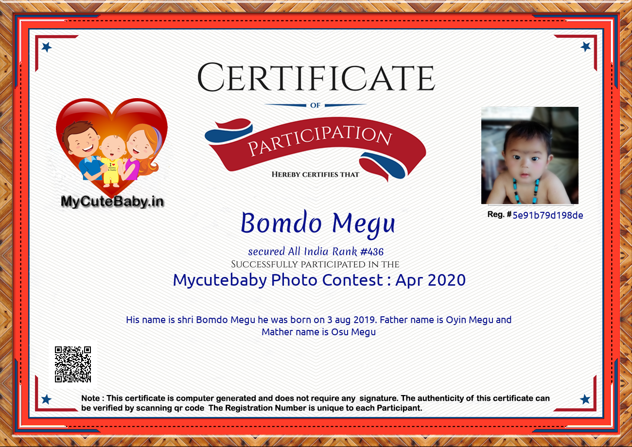 This Participations Certificate Is Verified With Registration Number #5e91b79d198de