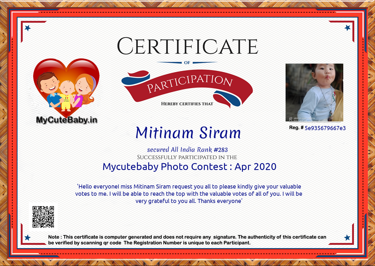 For participation in Mycutebaby's Monthly contest , April 2020 .