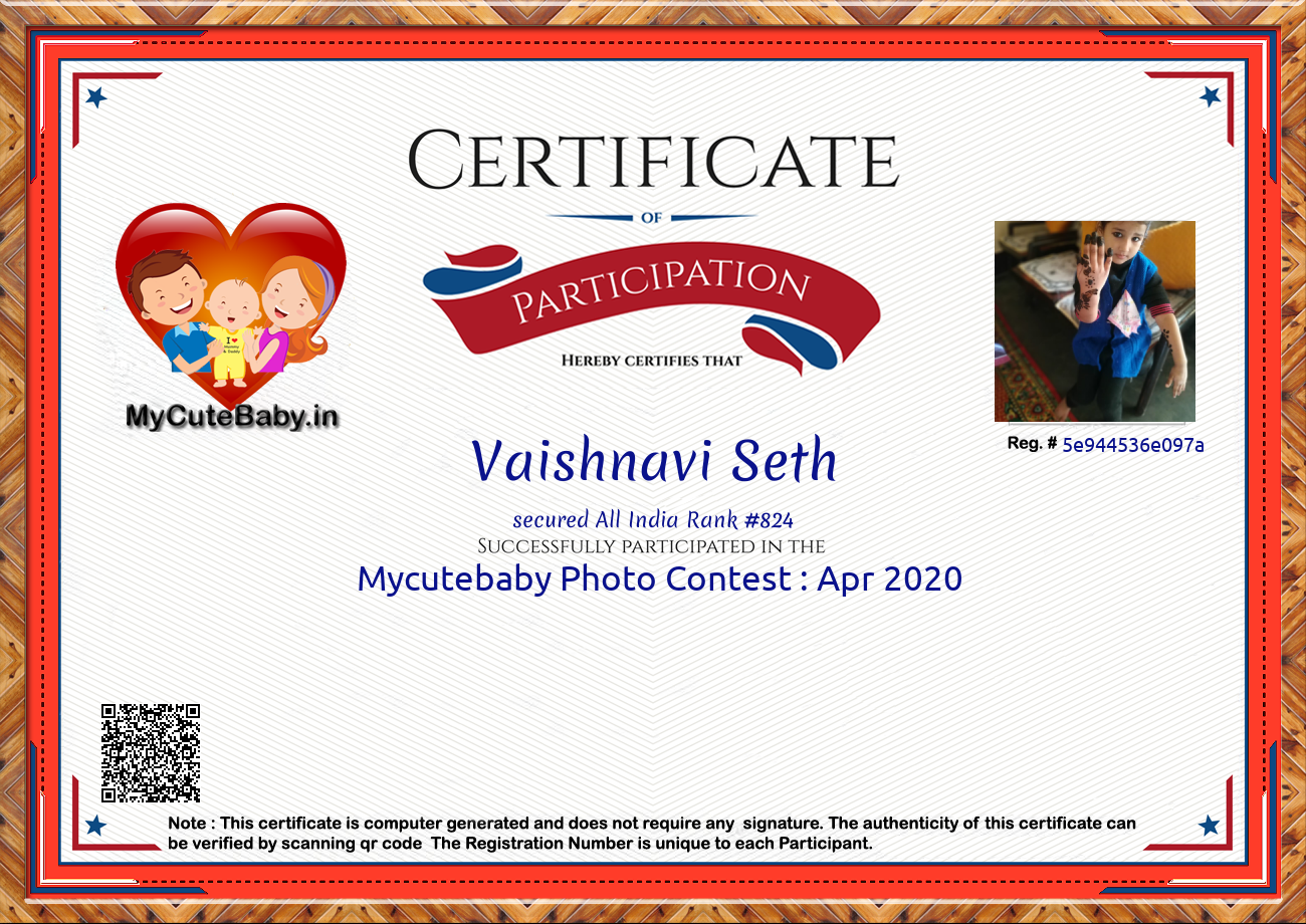 This Participations Certificate Is Verified With Registration Number #5e944536e097a