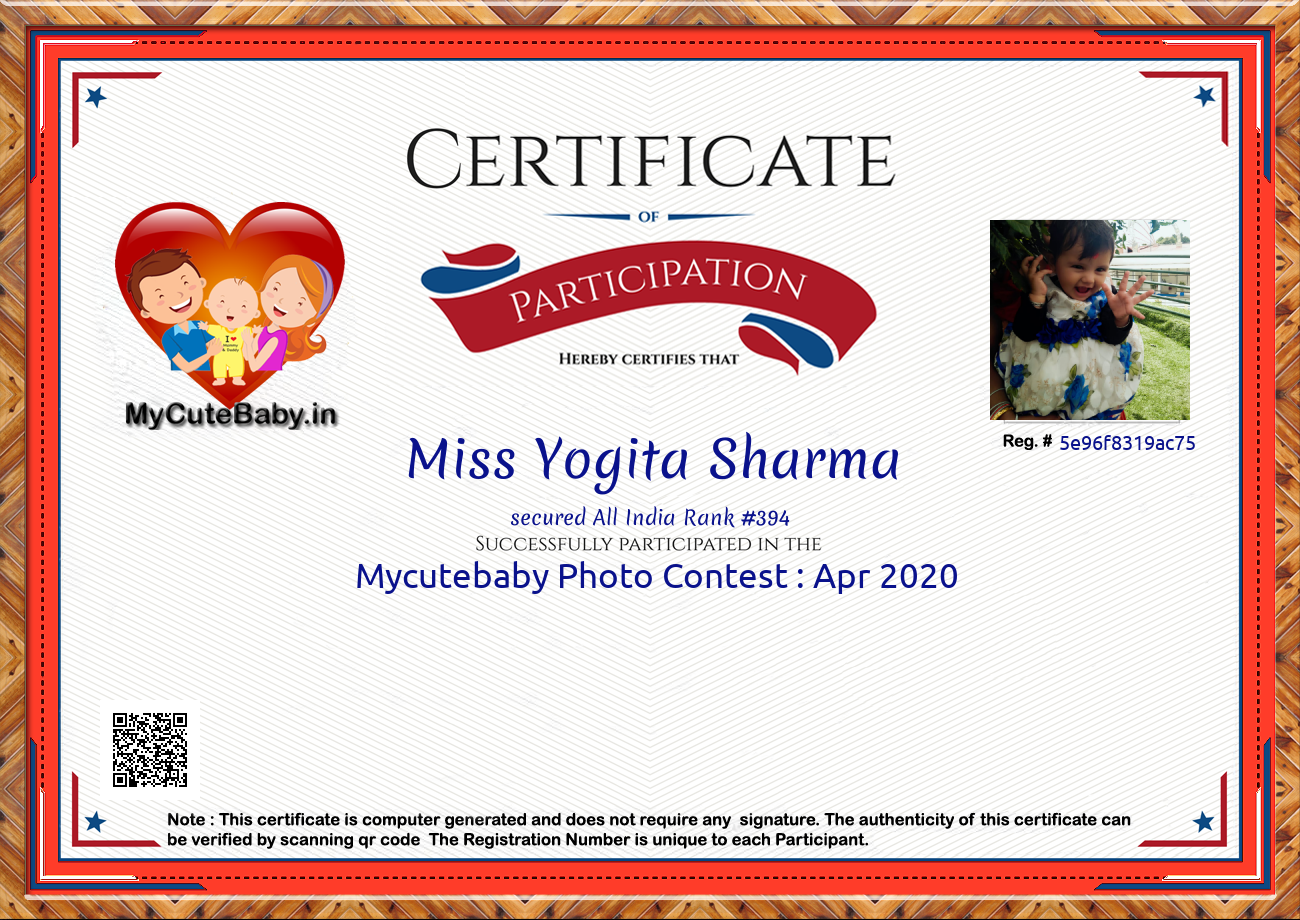 For participation in Mycutebaby's Monthly contest , April 2020 .