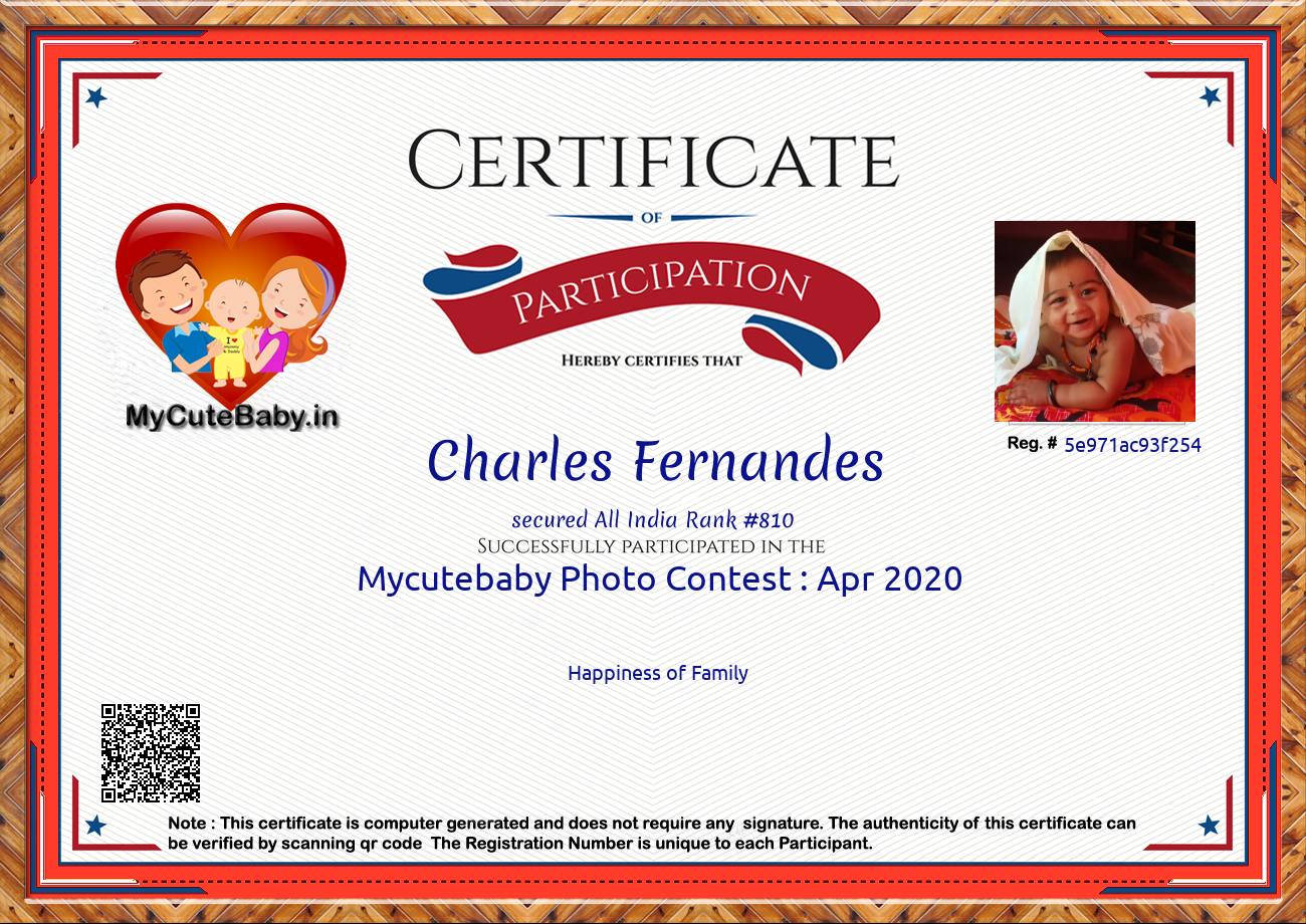 This Participations Certificate Is Verified With Registration Number #5e971ac93f254