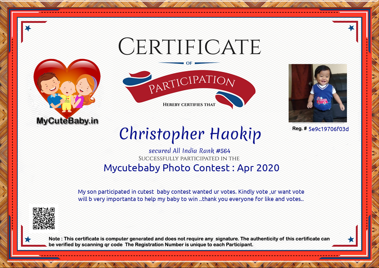 For participation in Mycutebaby's Monthly contest , April 2020 .