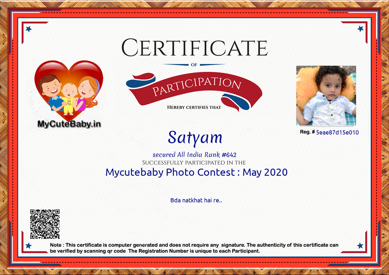 For participation in Mycutebaby's Monthly contest , May 2020 .