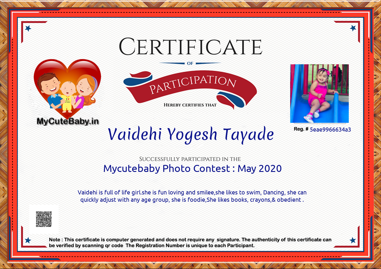 For participation in Mycutebaby's Monthly contest , May 2020 .