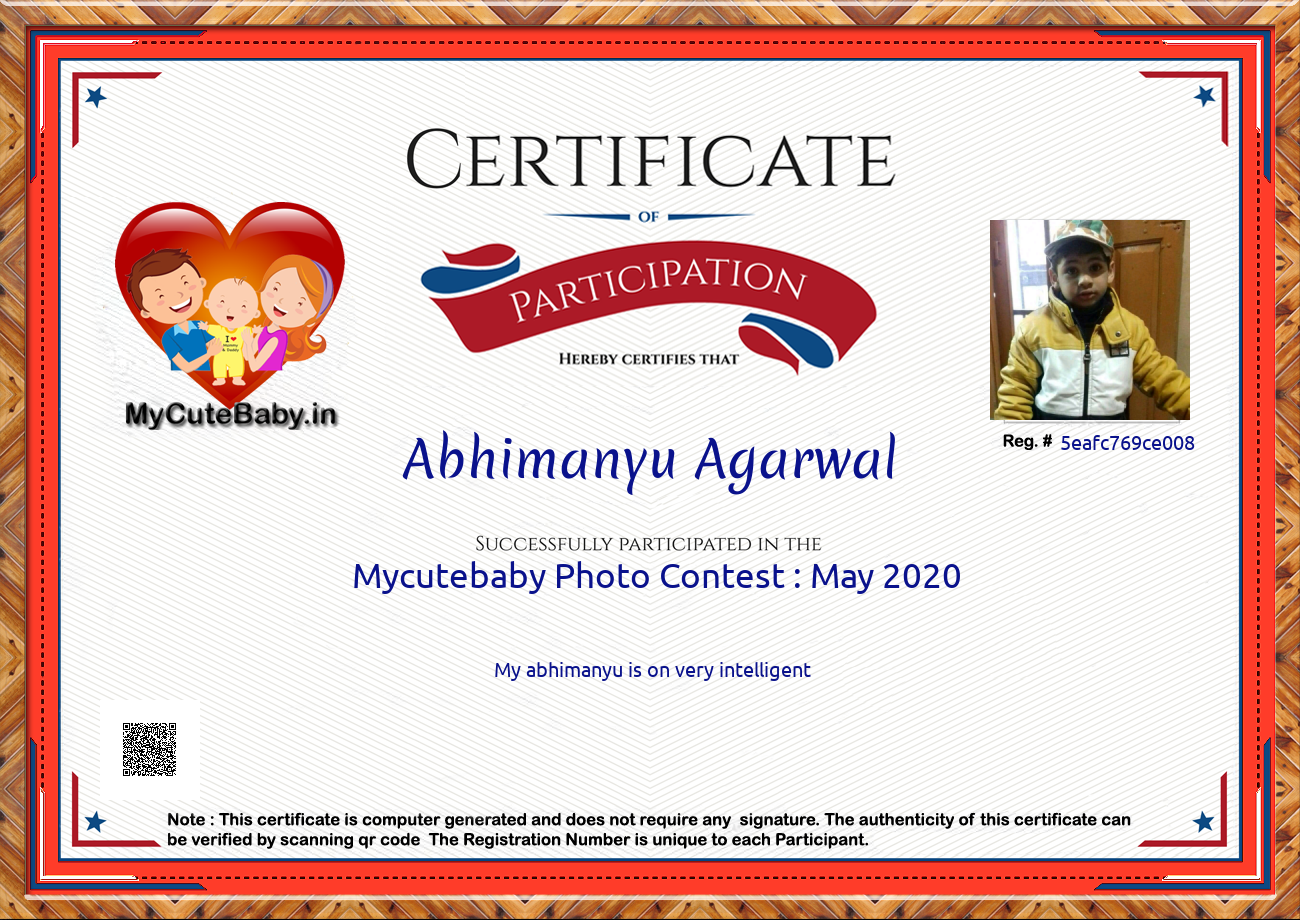 For participation in Mycutebaby's Monthly contest , May 2020 .