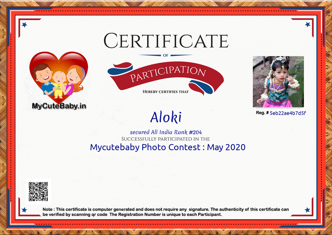 This Participations Certificate Is Verified With Registration Number #5eb22ae4b7d5f
