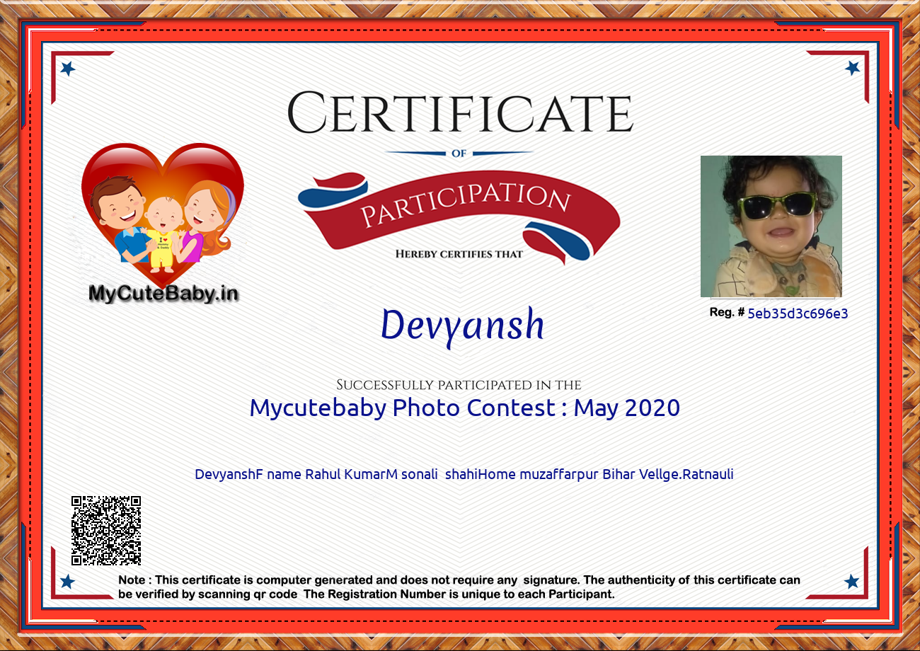This Participations Certificate Is Verified With Registration Number #5eb35d3c696e3