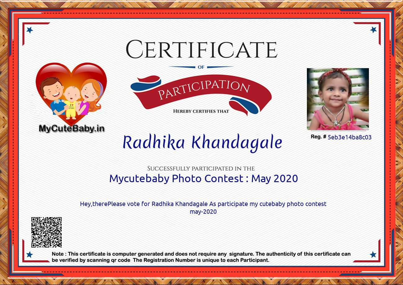 This Participations Certificate Is Verified With Registration Number #5eb3e14ba8c03