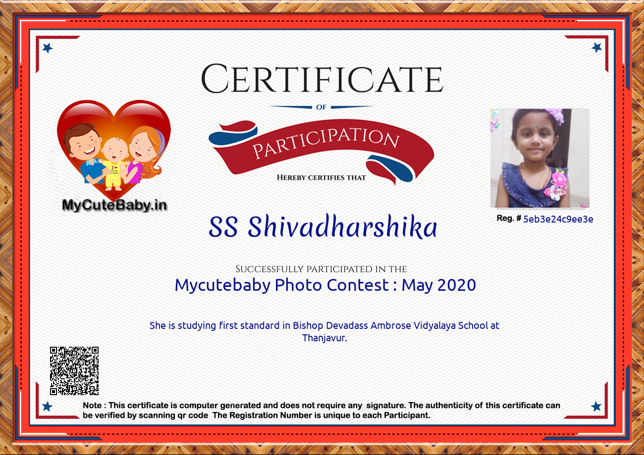This Participations Certificate Is Verified With Registration Number #5eb3e24c9ee3e