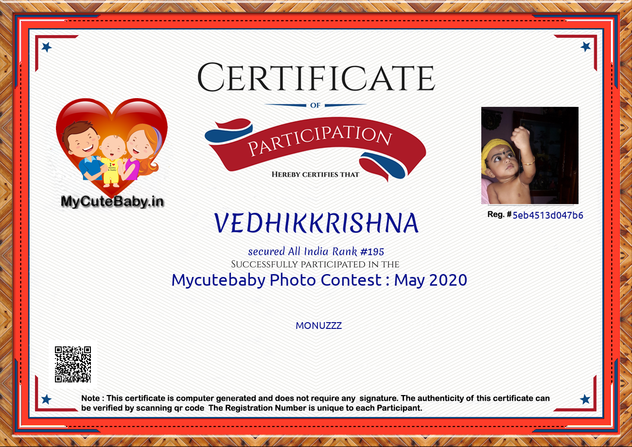 For participation in Mycutebaby's Monthly contest , May 2020 .