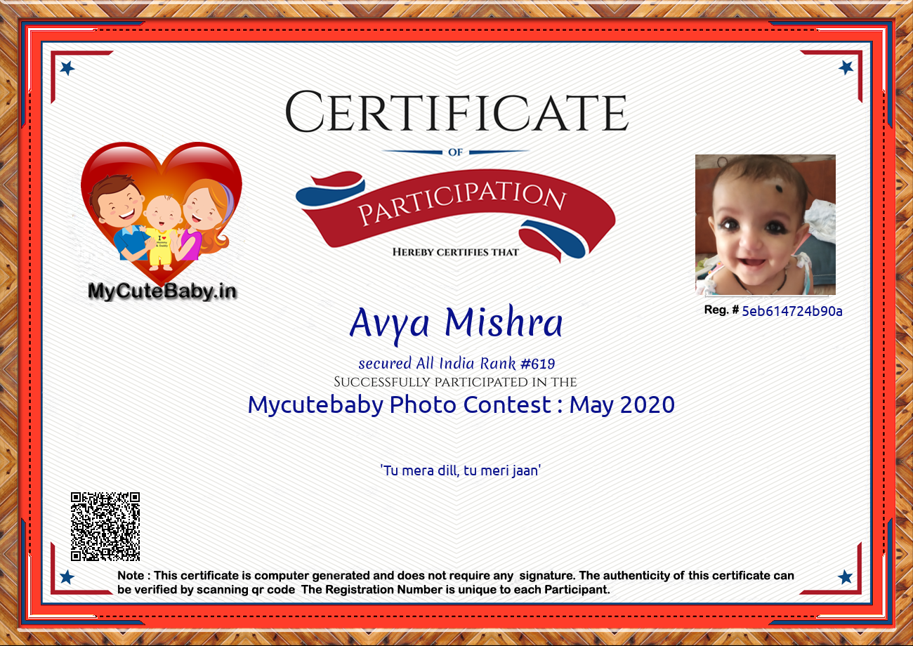 For participation in Mycutebaby's Monthly  contest ,  May 2020 .