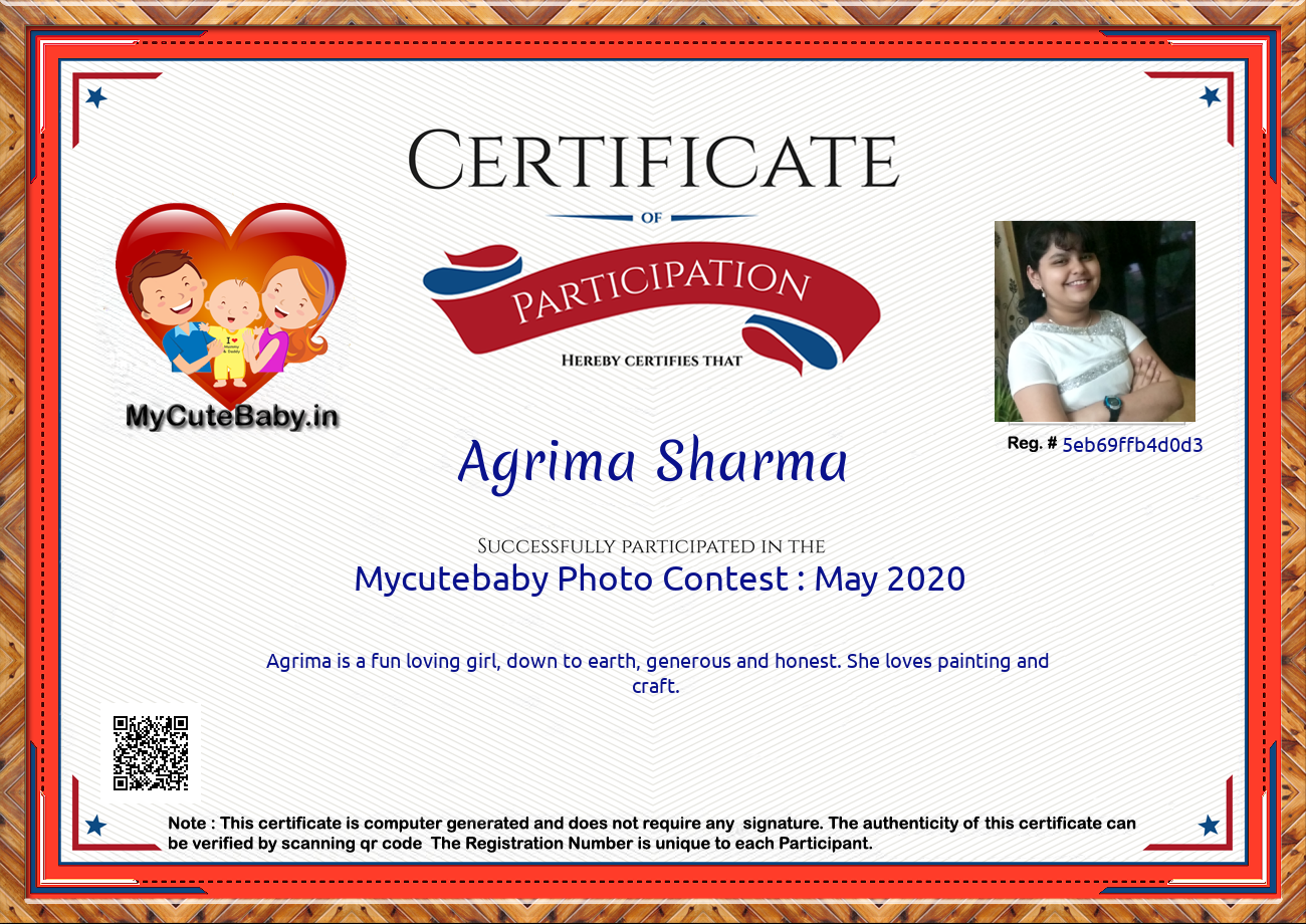 For participation in Mycutebaby's Monthly contest , May 2020 .