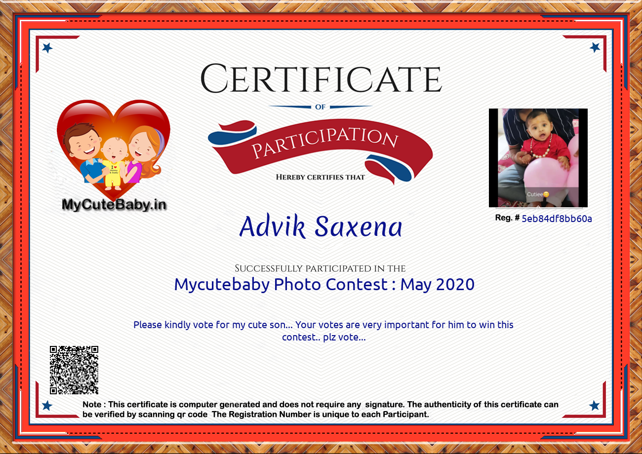 For participation in Mycutebaby's Monthly contest , May 2020 .