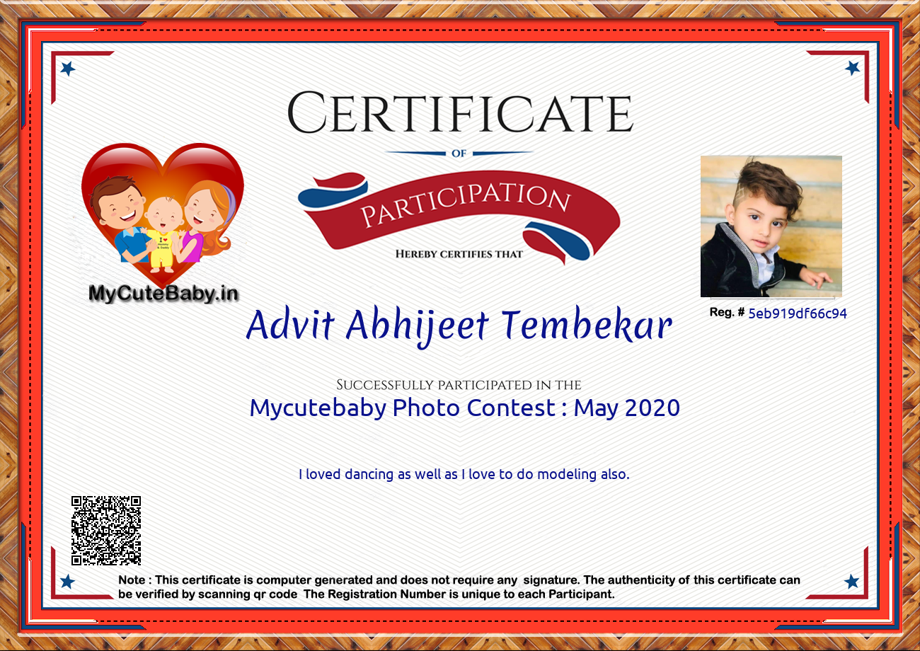 For participation in Mycutebaby's Monthly contest , May 2020 .