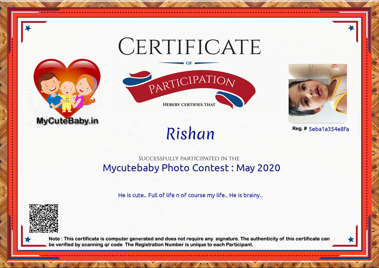 For participation in Mycutebaby's Monthly contest , May 2020 .