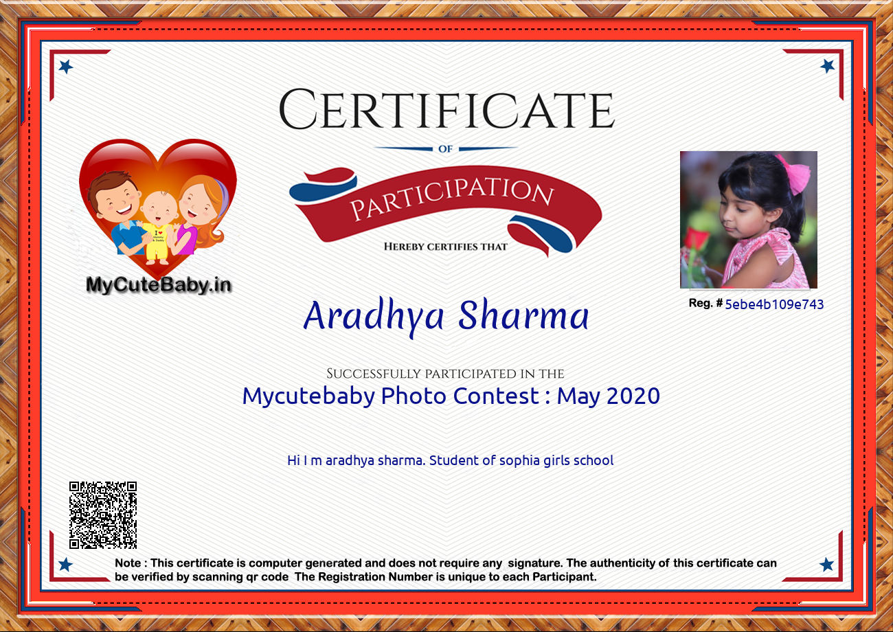 This Participations Certificate Is Verified With Registration Number #5ebe4b109e743