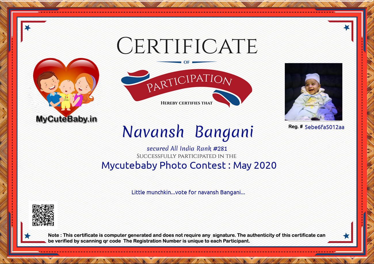 For participation in Mycutebaby's Monthly contest , May 2020 .