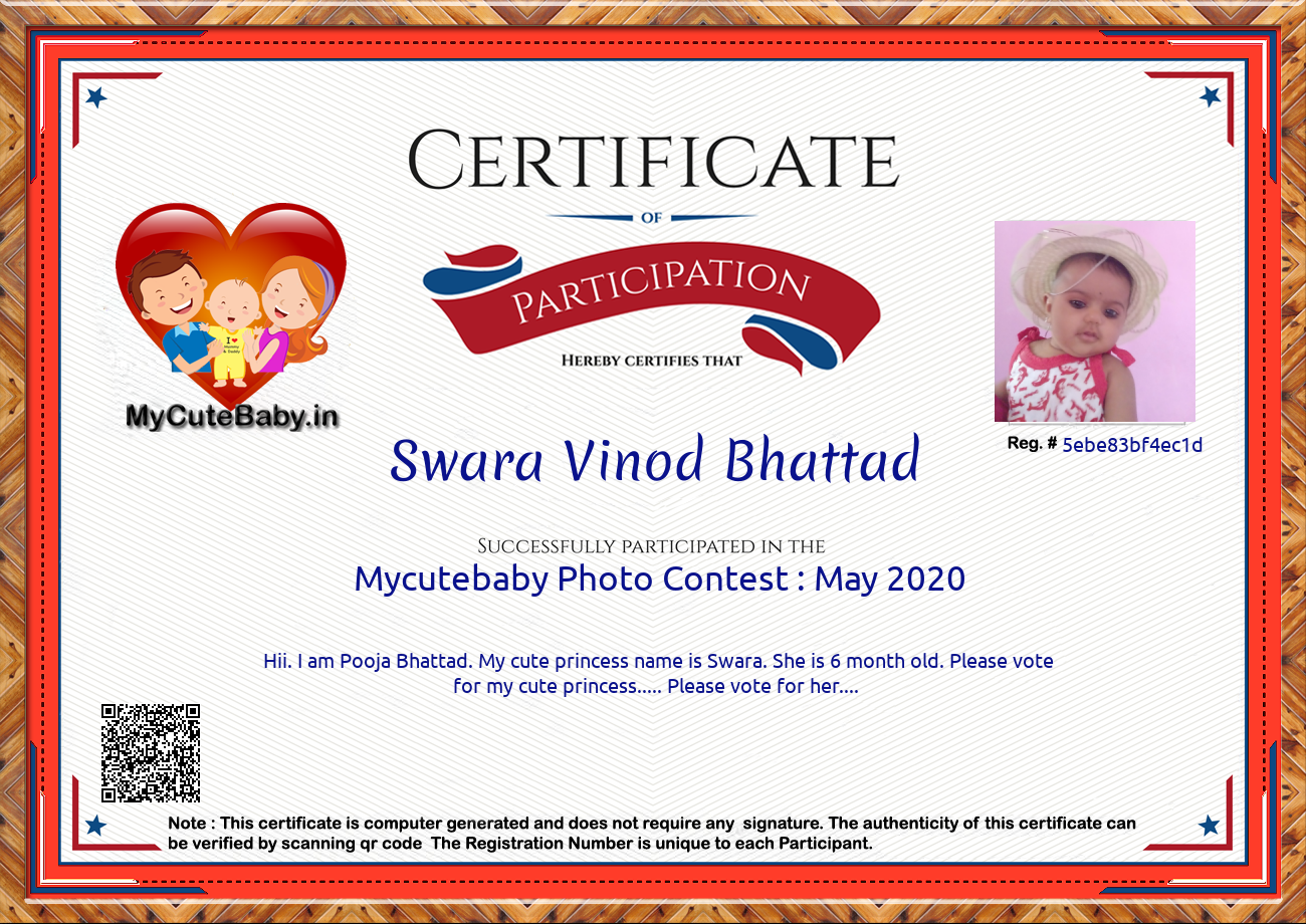 For participation in Mycutebaby's Monthly contest , May 2020 .