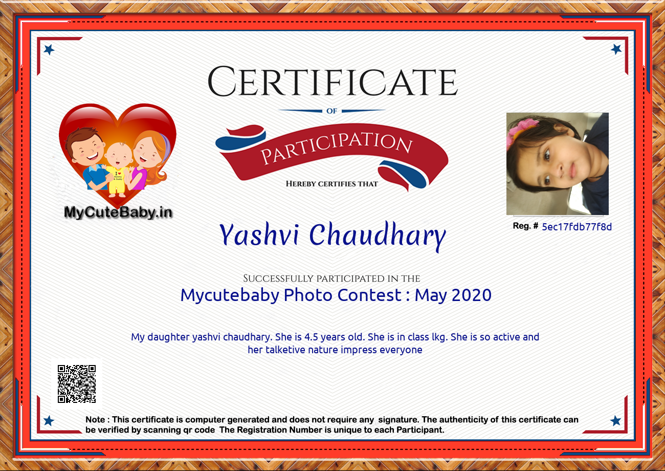 This Participations Certificate Is Verified With Registration Number #5ec17fdb77f8d