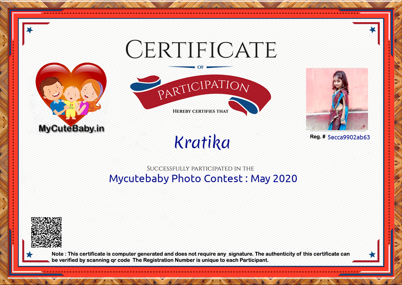 This Participations Certificate Is Verified With Registration Number #5ecca9902ab63