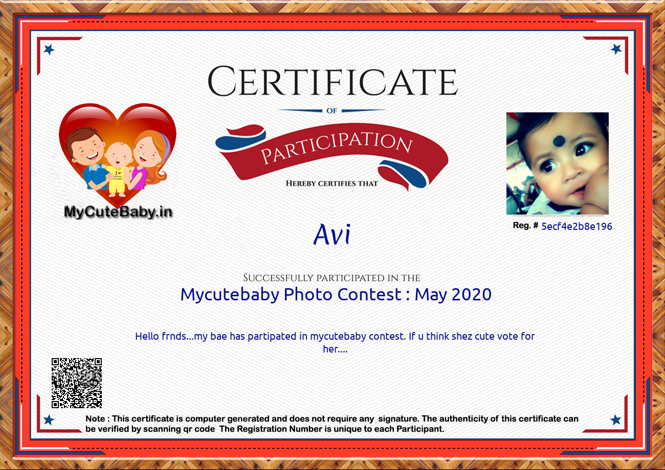 For participation in Mycutebaby's Monthly contest , May 2020 .