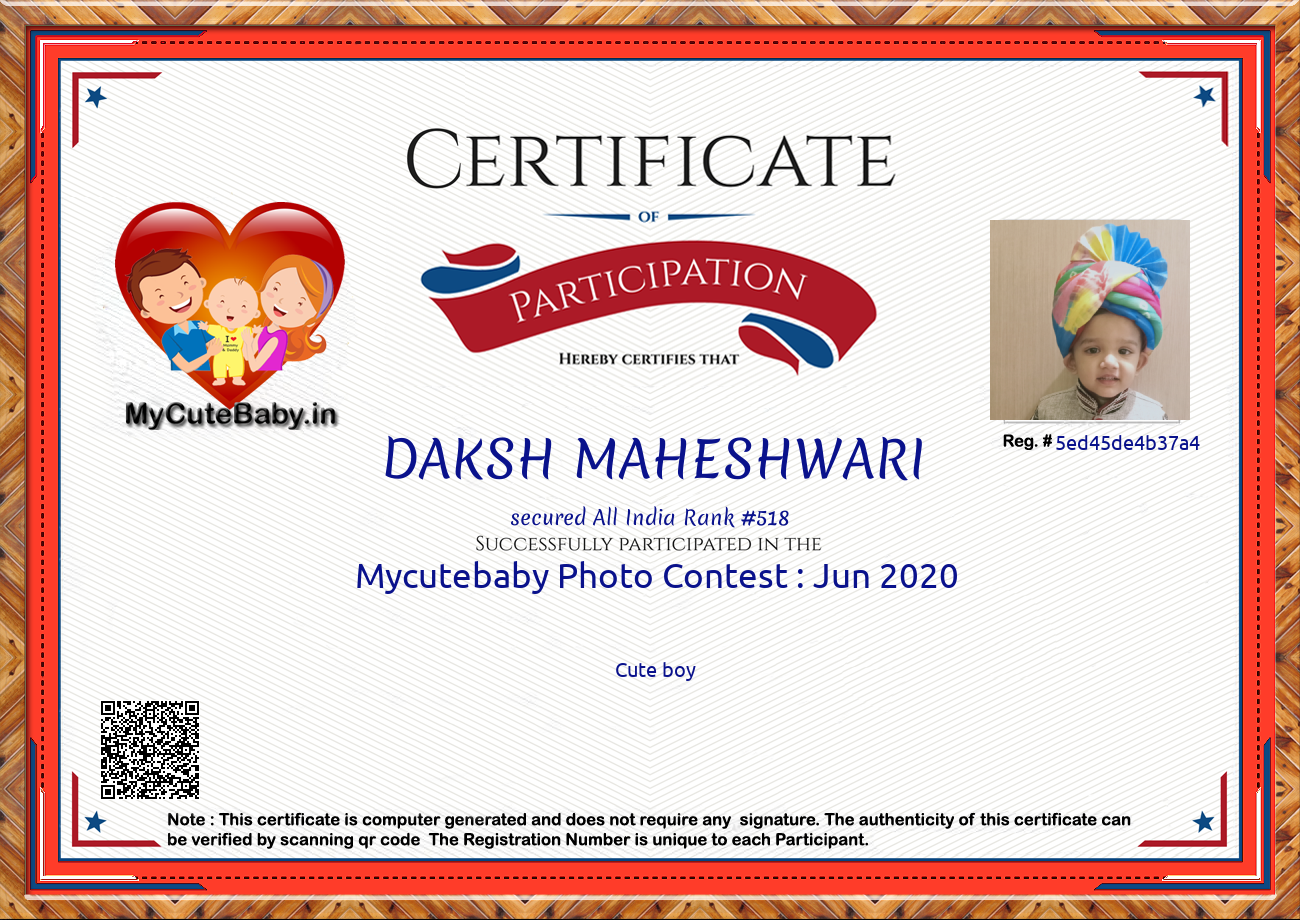 This Participations Certificate Is Verified With Registration Number #5ed45de4b37a4