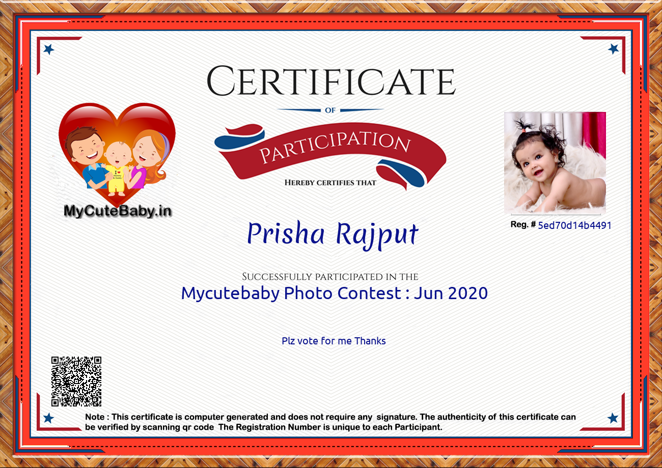 This Participations Certificate Is Verified With Registration Number #5ed70d14b4491