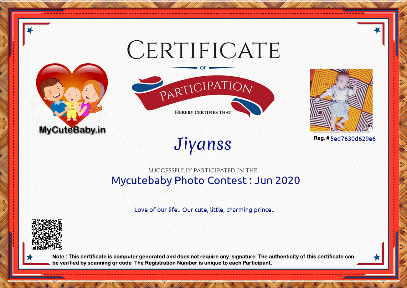For participation in Mycutebaby's Monthly contest , June 2020 .