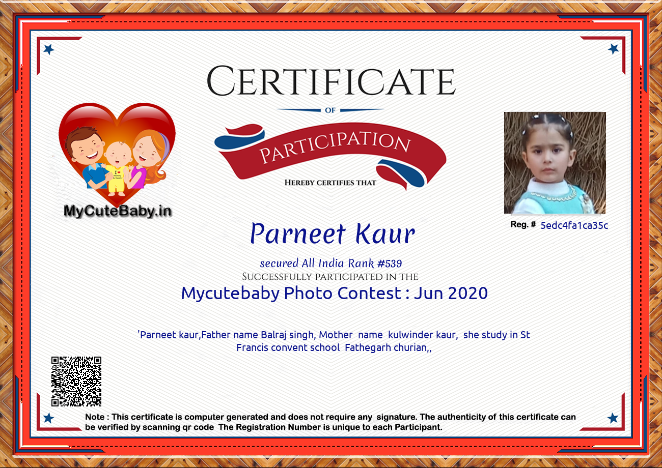 This Participations Certificate Is Verified With Registration Number #5edc4fa1ca35c