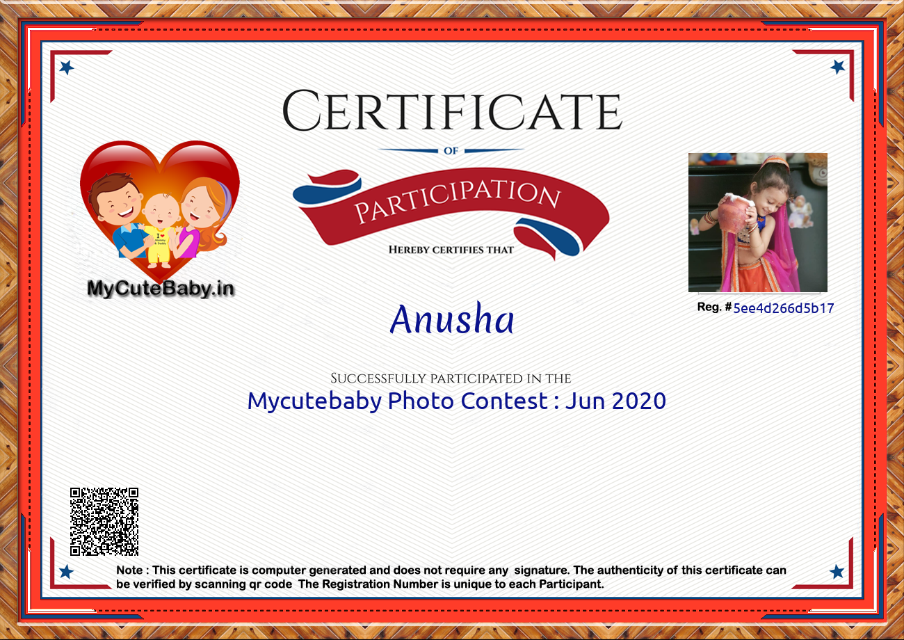 For participation in Mycutebaby's Monthly contest , June 2020 .