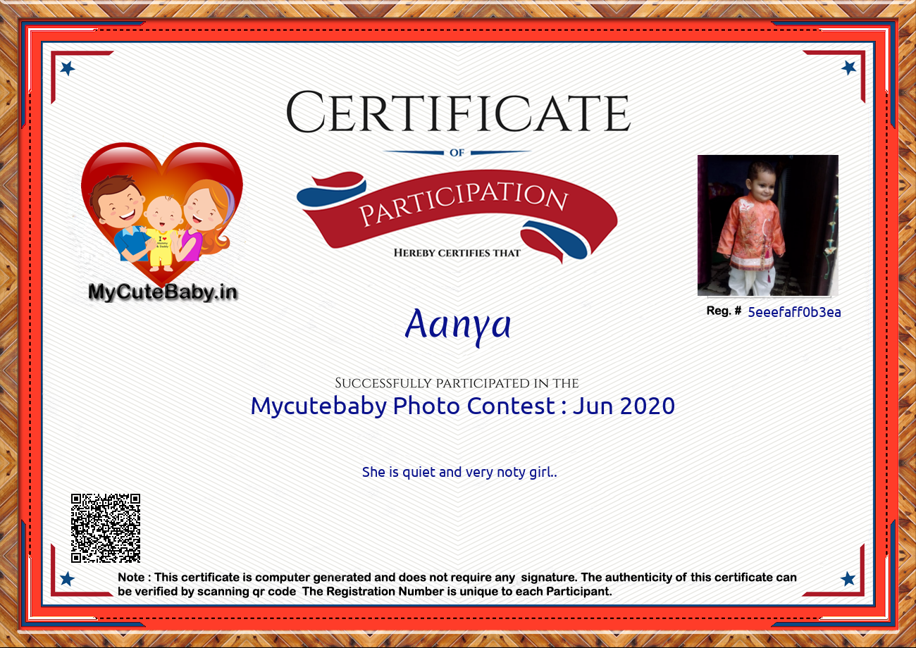 For participation in Mycutebaby's Monthly contest , June 2020 .