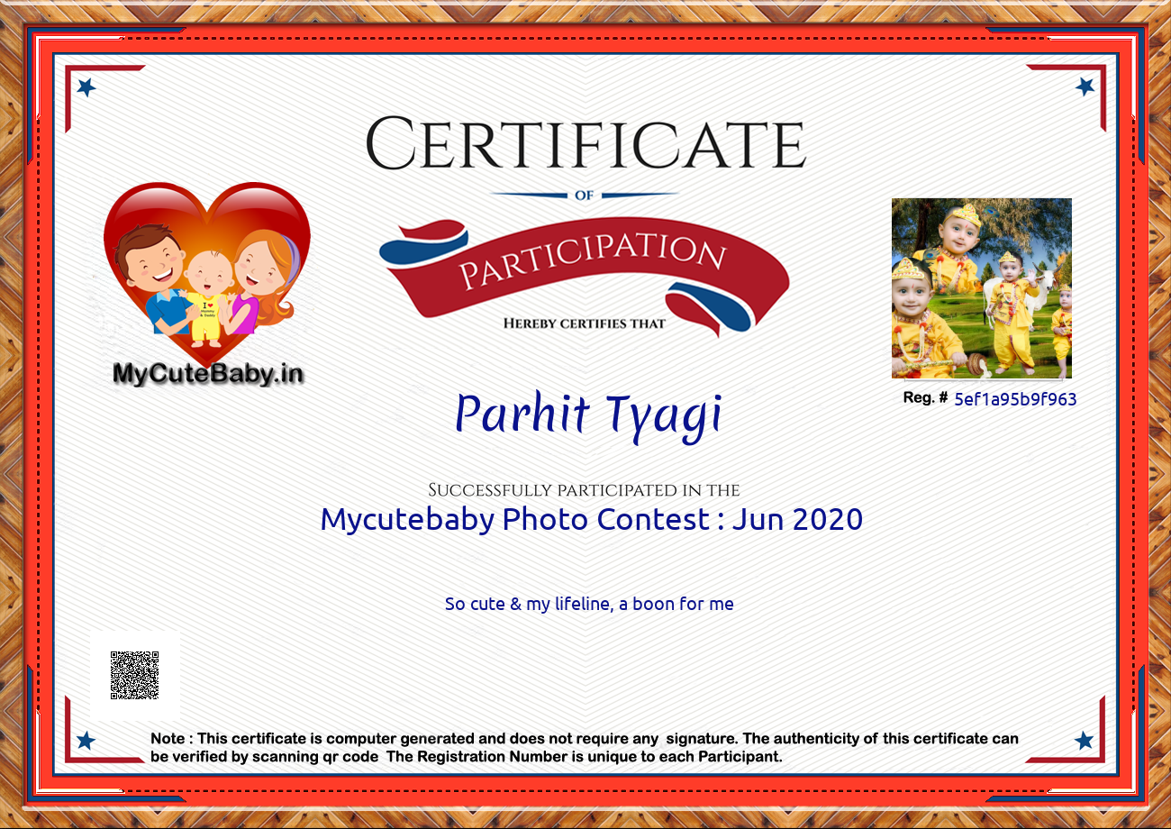 For participation in Mycutebaby's Monthly contest , June 2020 .