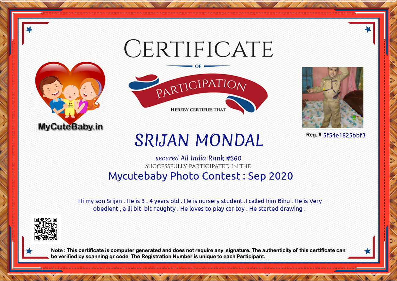 This Participations Certificate Is Verified With Registration Number #5f54e1825bbf3