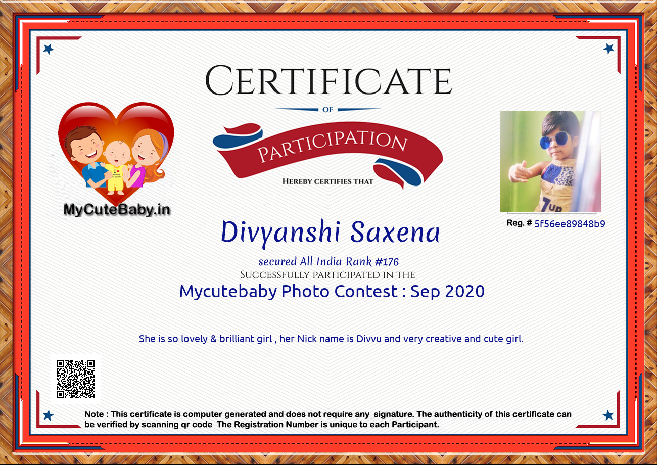 This Participations Certificate Is Verified With Registration Number #5f56ee89848b9