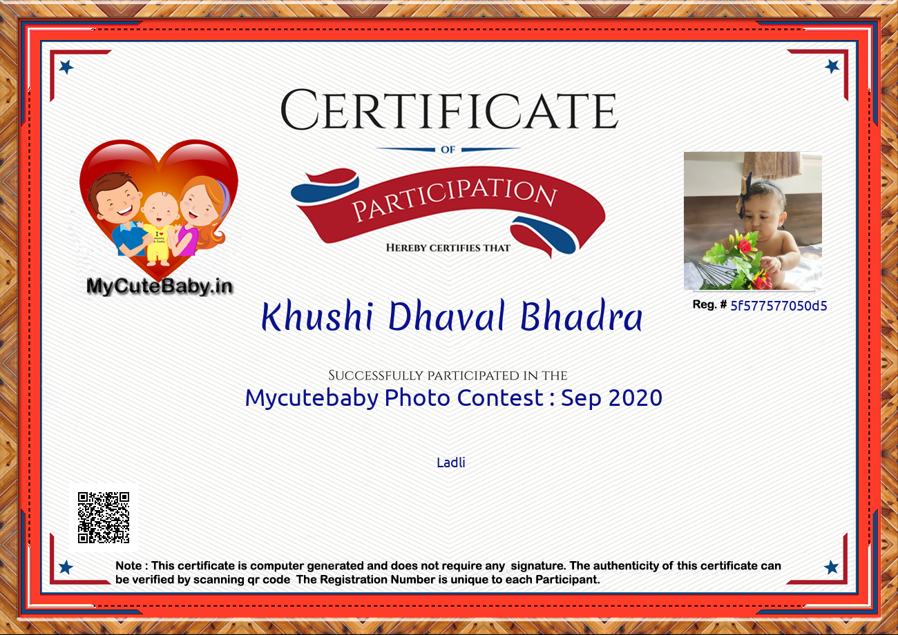 This Participations Certificate Is Verified With Registration Number #5f577577050d5