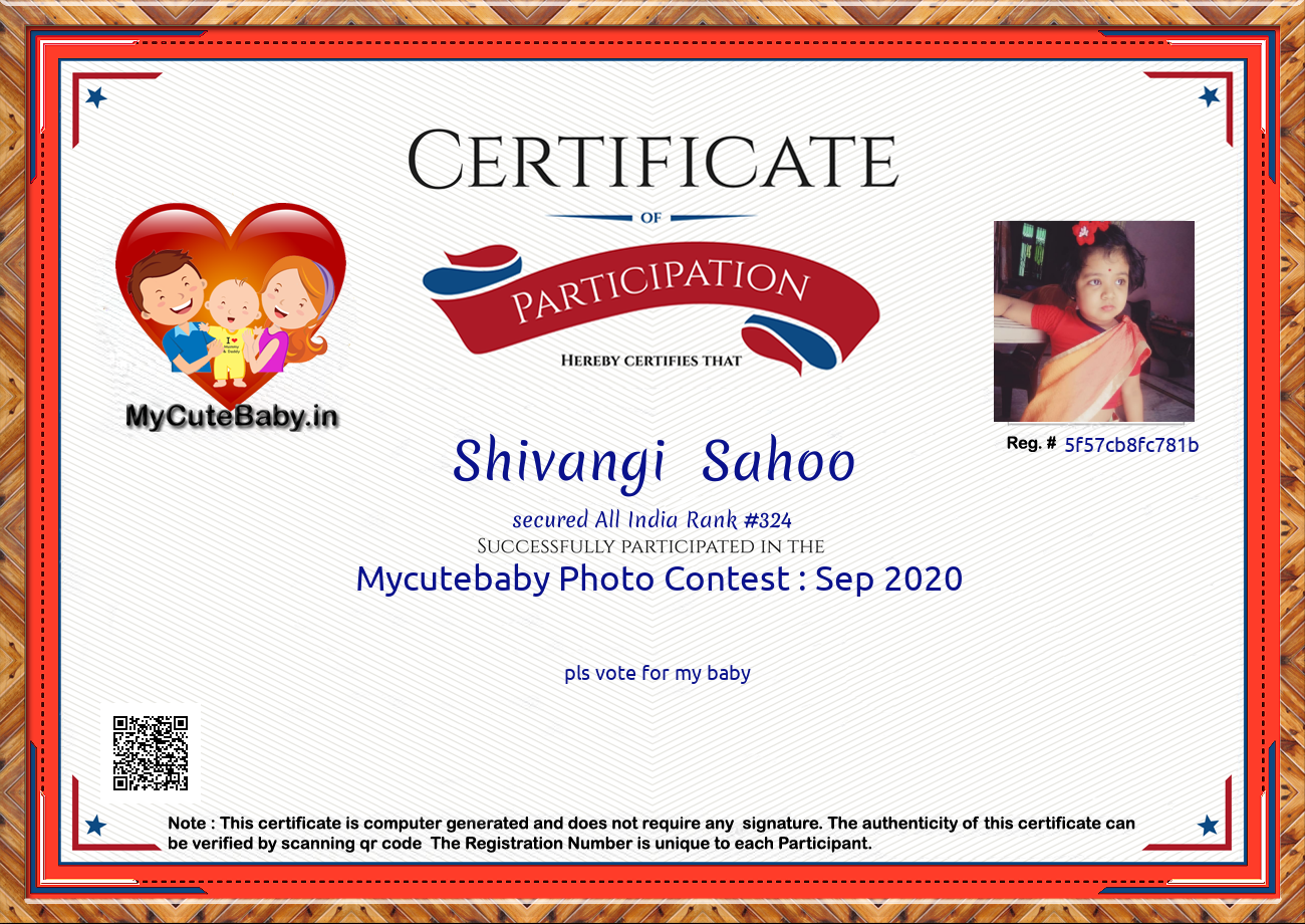 This Participations Certificate Is Verified With Registration Number #5f57cb8fc781b