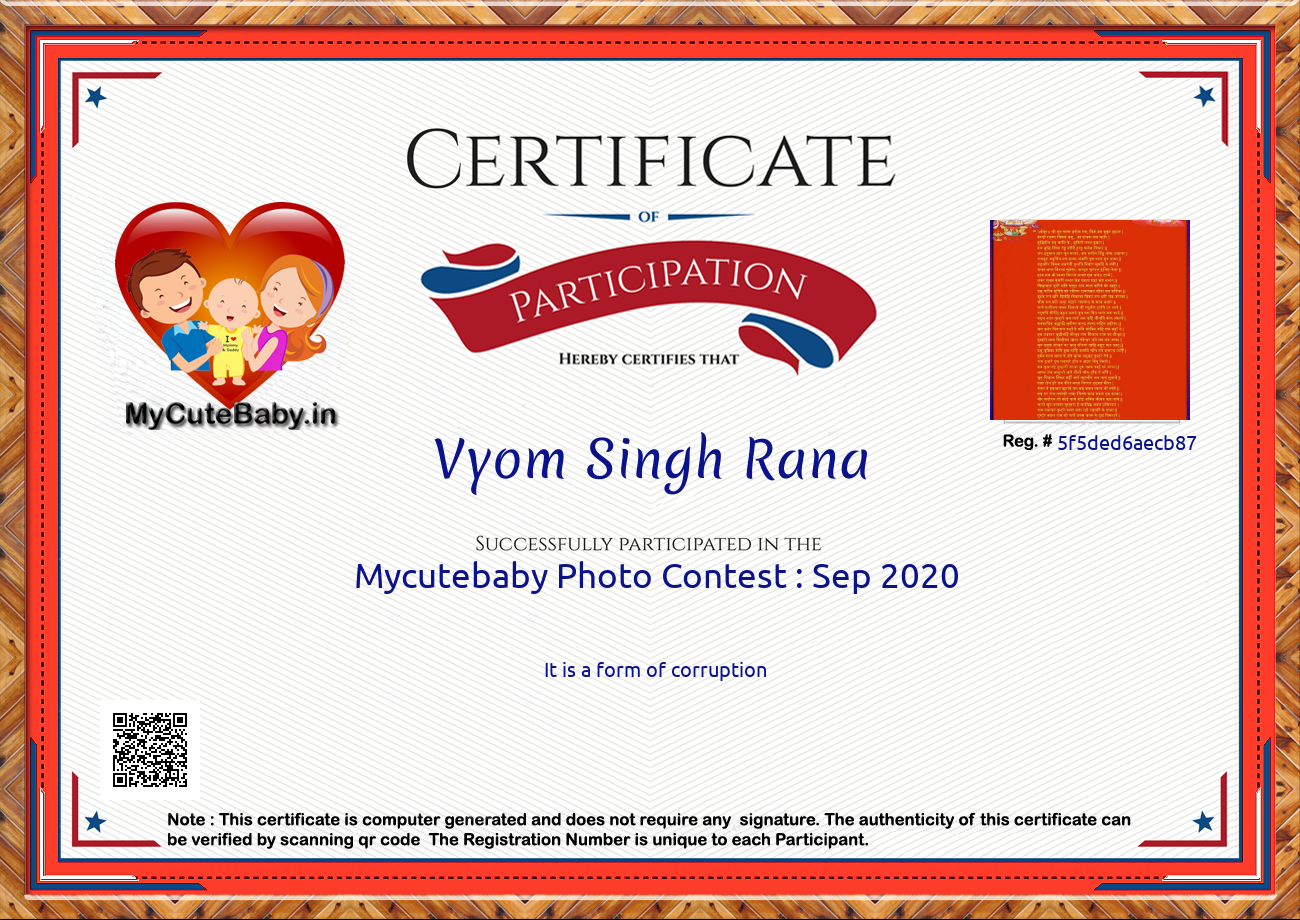 This Participations Certificate Is Verified With Registration Number #5f5ded6aecb87