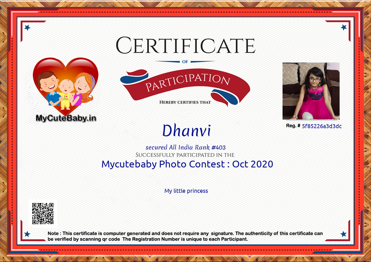 This Participations Certificate Is Verified With Registration Number #5f85226a3d3dc