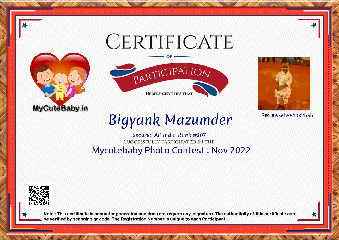For participation in Mycutebaby's Monthly contest , November 2022 .